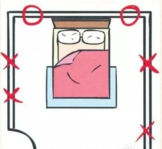 有些人为营造气氛而将床斜放且不靠墙,或为了闪避横梁而将床头悬空。床头不靠实墙,或调头睡,会造成睡眠品质不良、思想叛逆、怪异及与人沟通能力不良。