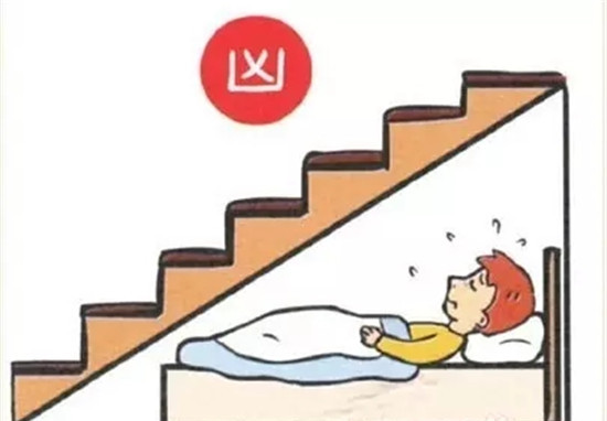 床在楼梯下方,睡在床上的人,睡眠状况一定不会好,经常恶梦不断。运势也非常差,很难有翻身的机会。