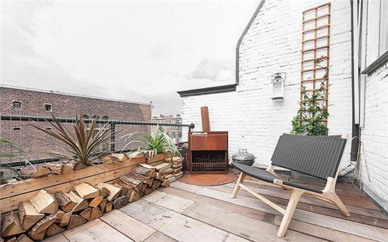 卧室的对面,穿过客厅、厨房就可以来到一个宽敞的露台。实木地板、白色朴素的墙砖、看似随意堆放的柴草、灰色的座椅,打造成一个可以休息观景的幸福场地。龙舌兰的搭配更是给露台增光不少,好想在这里晒晒太阳,感受每天的新鲜空气。