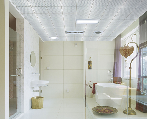顶部:防潮、遮掩最重要 在装修卫生间的顶部时,您要注意防止水蒸气,所以较好采用防水性能较好的PVC扣板。这种扣板可以安装在龙骨上,还能起到遮掩管道的作用。
