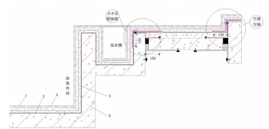 正所谓“材料是基础,施工是关键”,明确了泳池的选材,下一步还要做好施工处理,尤其是管根、进出水口处、阴阳角等细部节点部位,要重点加强。