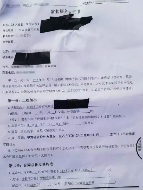 这是同一份装饰合同的两段截图,签署地是在江西宜春,即业主甲方和装修工程发生的所在地。蛋素!万一需要法律程序解决纠纷就要去丙方所在的江苏苏州,单程800多公里,高铁需要5小时13分钟,一天只有一班,我猜丙方是不会负责交通食宿的。看起来除了我们的国足以外,大多数时候主场优势还真的应该好好利用。