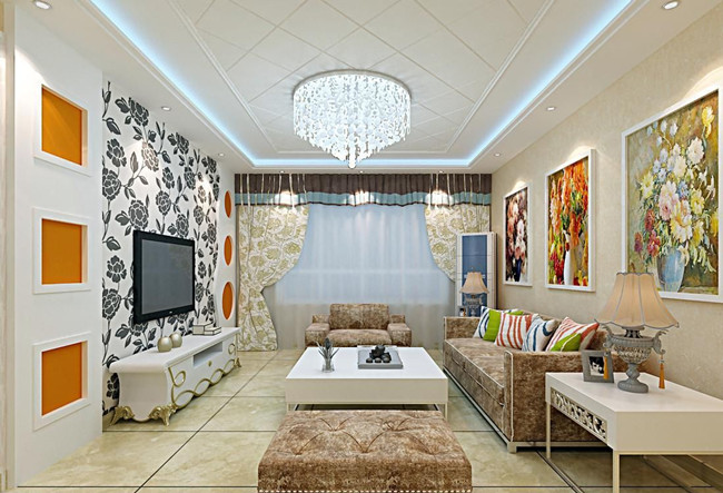 石膏线、灯盘、窗帘盒安装完毕,.再与顶棚、墙壁一起进行白色涂料装饰,力求外观统一 洁白,有整体感。