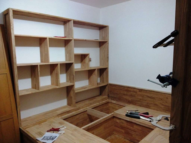 木工施工除了测量要精确以外,还要从选材阶段就开始严格把关。不论是衣柜还是鞋柜,表面的门都必须用同一张板做,以保证花纹,色泽的一致性。对于木制品本身加工完后,还应该在外面再刷上一层白胶,才能够有效的避免表面起拱或出现裂缝。