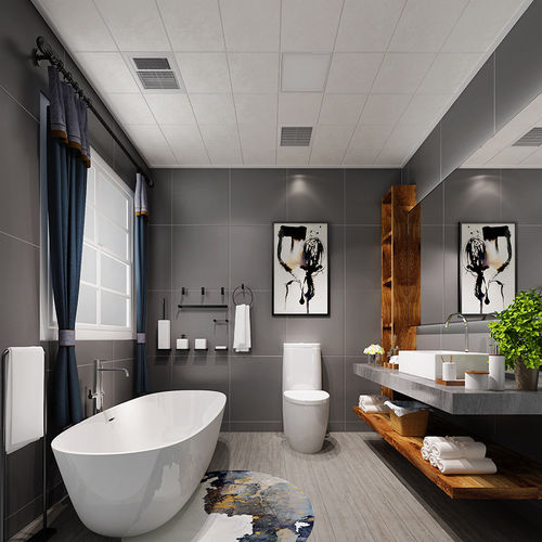 4)、铝扣板:严格要求水平,轻钢龙骨卡口齿要对齐,龙骨间距50以内,吊筋间距60-80公分为宜,上板时手要轻,以免将板面按出坑来,边条与瓷砖接触处不严实的要用密封胶打严实。