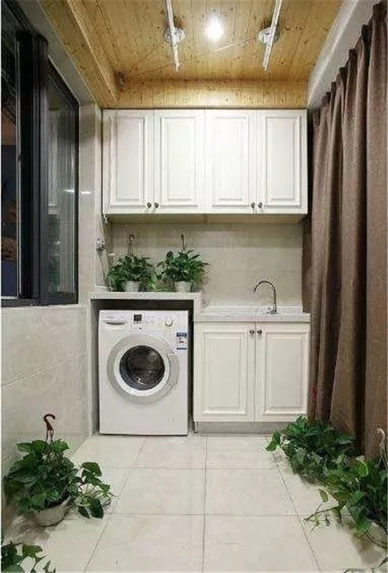 如果家里的阳台需要用来放置洗衣机、晾晒衣物等等,建议选择在墙面贴瓷砖,并且建议选择防滑砖!