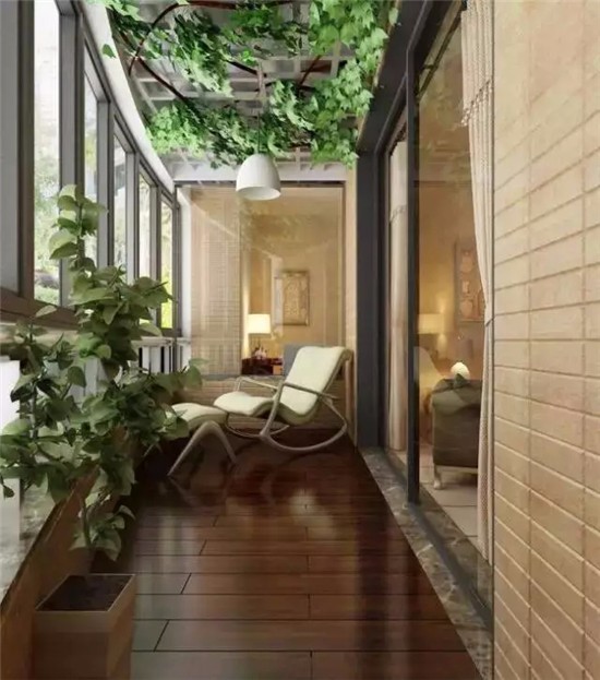 不同色系、不同款式的木纹砖,让户外阳台变成一个简朴安宁的空间。
