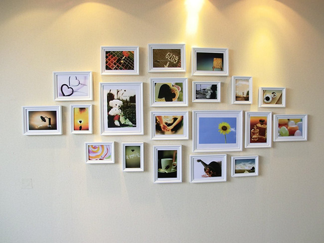相片墙的组合比较自由,但并不是说将墙壁贴得满满当当就美了。相框的形状有很多,长方形、正方形、菱形等等,通过这些形状各异的相框组合在一起,就能形成凌乱的视觉冲击。因此就要了解清楚尺寸大小了,最大用几寸,最小用几寸,只有这样才能在设计相片墙的时候得心应手。一般相框之间距离为5厘米为佳,不过这个也要看个人喜好,有些人喜欢小相框,也有些人喜欢越大越好,只要能将它们组合成一个整体就行。