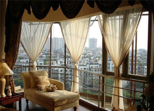 2、若是要在阳台装窗帘,那么我们只需要在阳台装单层的纱窗帘,在阳光当中安装布艺窗帘,一般纱窗都是有花色的,而布艺常来你则没有图案,如果感觉阳台的阳光太大的话,也可以在阳台当中选用防晒窗帘,具有遮光效果。
