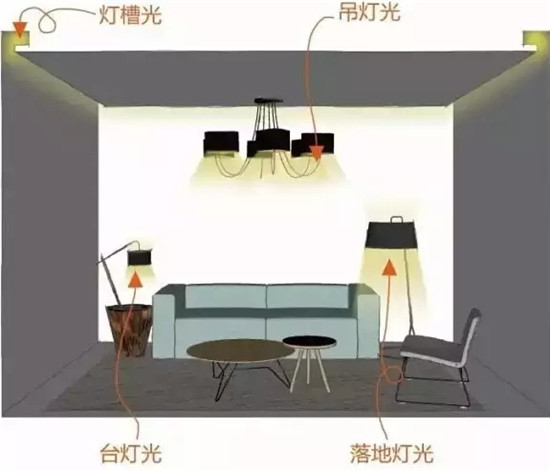 客厅是最重要的会客空间,也是一家人聚集最多的 空间,所以客厅的光线层次就需要比较多。