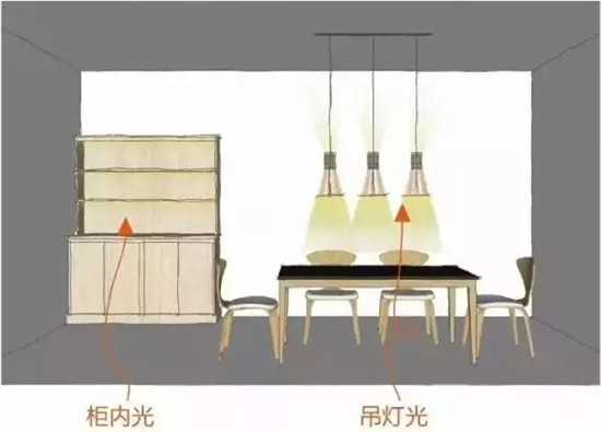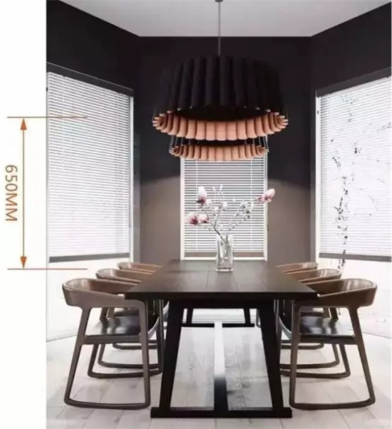 因此,灯光的重心应该降低,吊灯距桌面650mm左右为最佳。