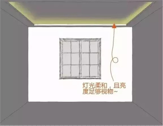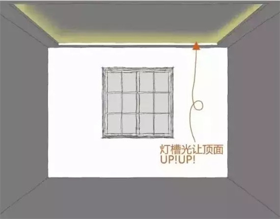 灯槽灯通过漫反射的间接照明,打亮整个房间顶面, 在视觉上很好的起到了房间增高的作用!