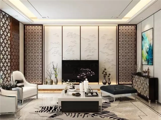 现代中式风格是将现代元素和传统元素进行了有机的结合,以现代人的审美需求去营造传统韵味。新中式风格大多数采用对称式的布局,用以营造清幽雅致的生活氛围,在装饰细节上崇尚自然情趣。在家具选配上,一般采用传统的圈椅,条案等中式家具去进行西式陈设,强调舒适性与实用性。在色彩上,通常以黑、白、灰色为基调,局部用红、黄、蓝、绿等进行点缀。在材质上,多采用硬质木材进行加工,用来表现东方文化的内敛气质。
