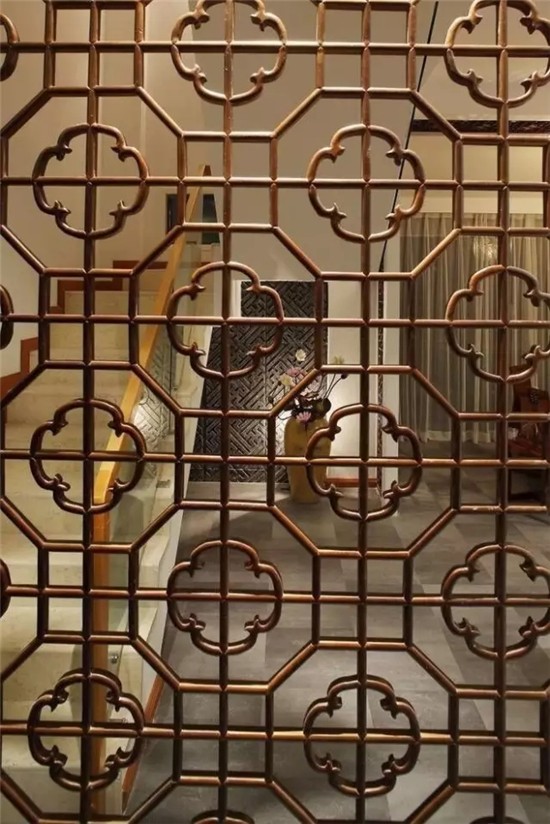 空间上考究层次,多用隔窗、屏风来切割,用实木做出健壮的结构,以固定支架,中心用棂子雕花,做成古拙的图画;当然一些木质隔断或者博古架是不错的选择,但是尽量要与整个家居色调以及风格相搭配佳。