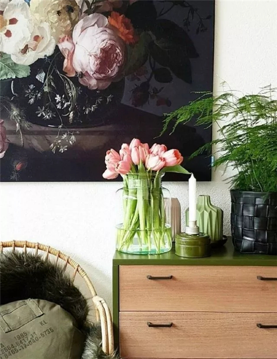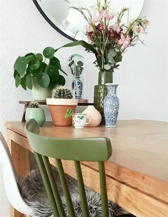 室内设计风水上讲究“开门三见”,即“见喜”、“见绿”、“见画”。这其中的“见绿”就是指进门最好能看到绿植花艺。