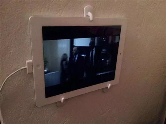 这个方法是给喜欢躺着看视频的小伙伴准备的,作用有些类似于网上卖的懒人支架。不过它要节省很多,量好距离,上下固定住3个挂钩就可以了。