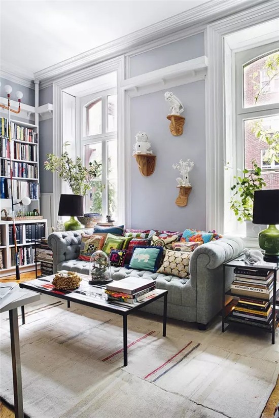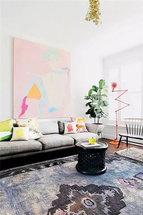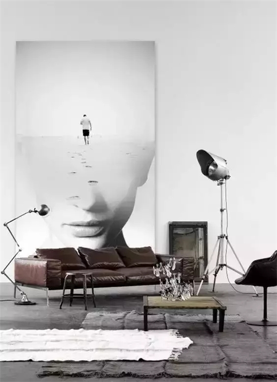 许多时候,沙发是否靠墙,是你说了算,甚至你可以让沙发只有一半靠墙,那么,你完全可以发挥想象空间进行设计了,沙发墙可以是空气,也可以是一个矮柜,一个半高隔断,也可以是半面墙。