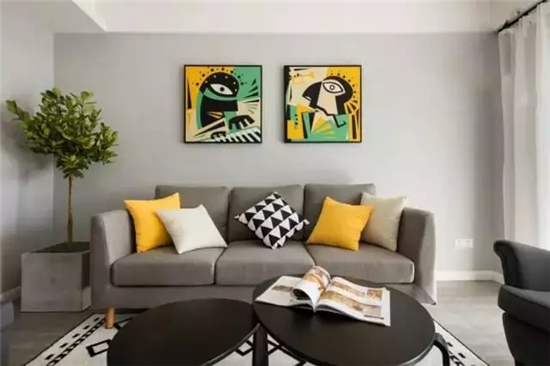 挂装饰艺术画或者艺术照片虽然是最简单的装饰沙发背景墙的方法,但是选对了画和照片能突出主人的品味,为客厅营造出想要的氛围。