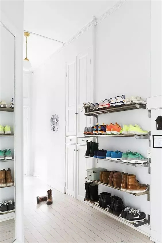 看看下面鞋子的摆放,金属搁板用起来,