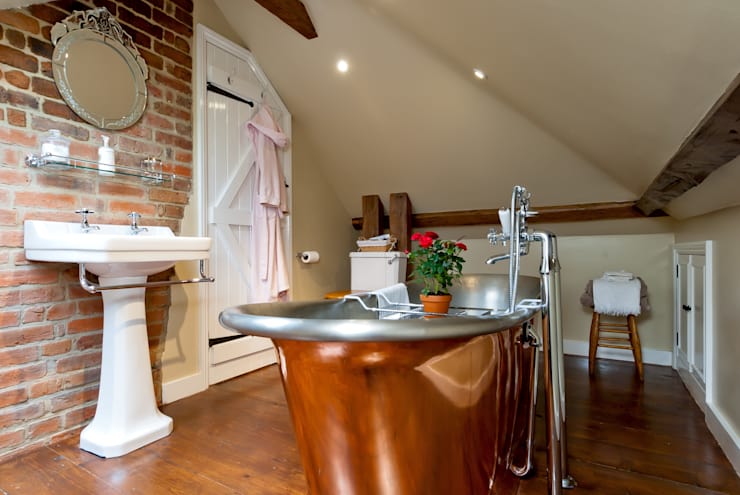 增添浴室的闪亮元素也是简单的提亮术。例如在这个图中,闪亮的浴缸可以带来反射效果,比起白色的浴缸能为浴室博得更多空间。