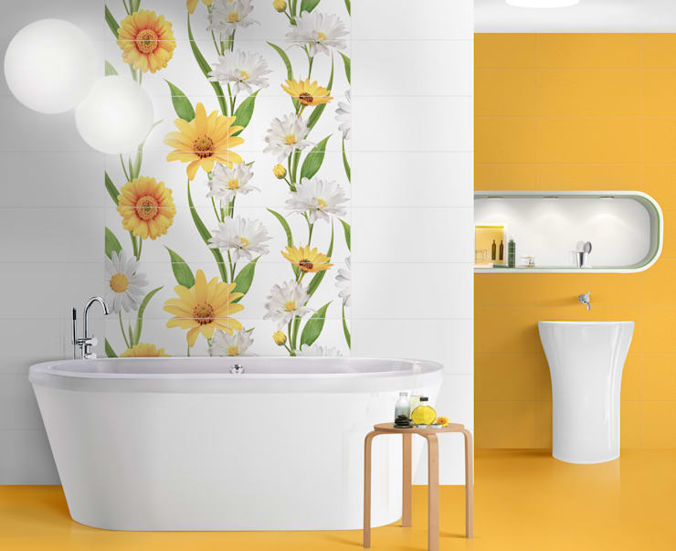 利用颜色、艺术品、照明以及家饰品来转移缺乏灯光的缺陷。例如这个图中的浴室便贴上了让人心情更为明亮的壁贴,你也可以摆上相框,营造同样的效果。
