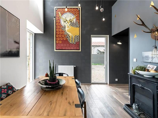 线条感十足的餐厅灯, 充满艺术气息,也解决了空间单调感。