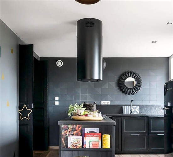 L型开放式厨房,格调清晰, 黑色也始终是精致的典范,也更耐脏。