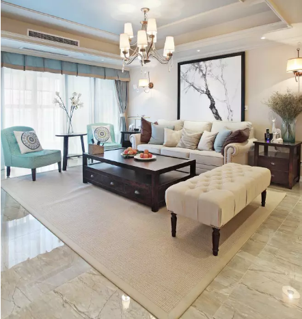 美式的舒适,中式的古典,没有过多艳丽的色彩,多是由较为柔和的色彩譬如奶茶色、卡其色等来打造整个空间,小部分由蓝色作为点缀,来烘托整个家的宁静氛围。