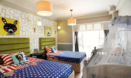 儿童房墙纸尽量选择鲜艳的色彩,丰富的色彩有助于小孩子的视力开发。但是色调上依旧以浅色调为主,和房间风格统一。