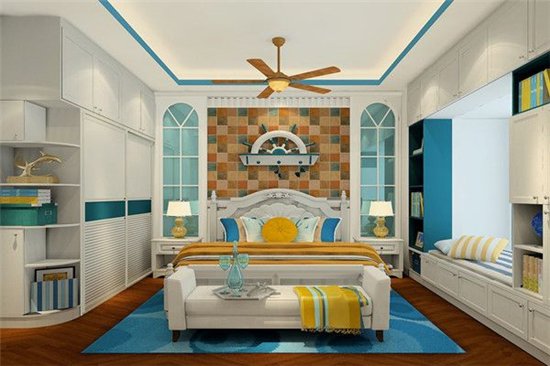 这款充满童趣风格设计的卧室,无不给主人一种欢乐轻松的感觉,让人住起来舒服温暖。米白色面板为主的装饰设计使整个卧室看起来明亮宽敞。窗台凹处设计不仅可以休息还可以阅读工作。衣柜多个柜子以及双门的设计不仅可以摆放各种物品而且还使柜体时尚简约大方。
