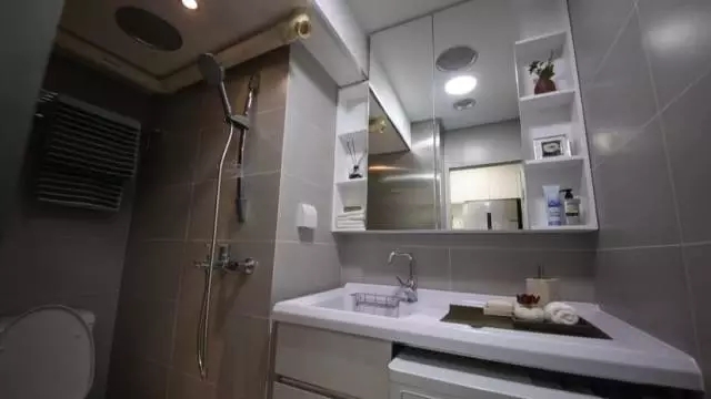 比如上方设置吊柜,放置些日常洗漱用品