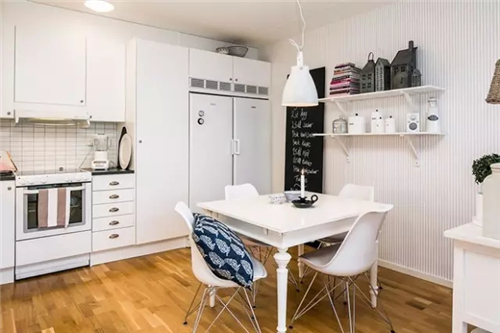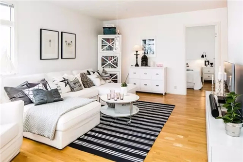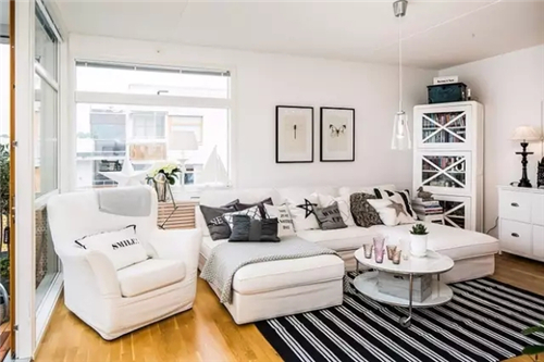 小户型不宜采用过暖的颜色做基调,采用白色和米色是最好的,能让房屋看起来宽敞大方。
