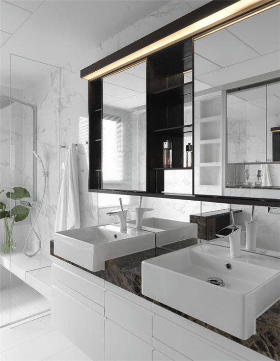 采取精品旅店式的双面盆规划,能够看出设计师贴心备至的机能细节。