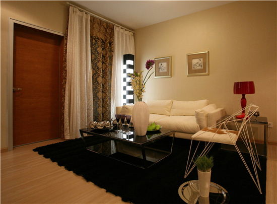 客厅内家具的摆放是影响客厅空间设计合理与否的关键因素。家具的大小要与客厅的大小相一致,客厅面积小,相对应的家具尺寸也要小。另外,家具的造型也要跟客厅空间的设计相适应。