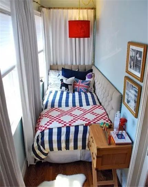 小编的话:这间阳台直接被业主装修成了一间小卧室的样子,小小的睡眠空间看上去也尽显温馨,紧靠窗边的睡眠空间一定比一般的卧室采光更好吧?