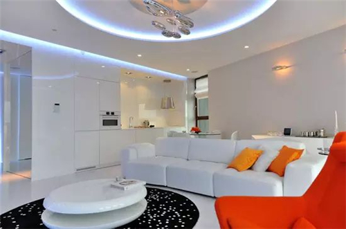 编辑点评:开放式的空间设计以沙发隔断客厅与餐厨空间, 白色的餐桌椅自然地融入整体,餐厅尽显优雅简约风格。