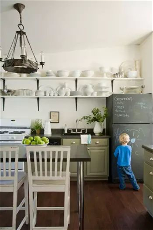 编辑点评:用隔板取代传统的橱柜设计,节省空间,增添收纳展示功能,使用也更加方便。那一排排洁白的餐具,立显居室的整洁干净美。