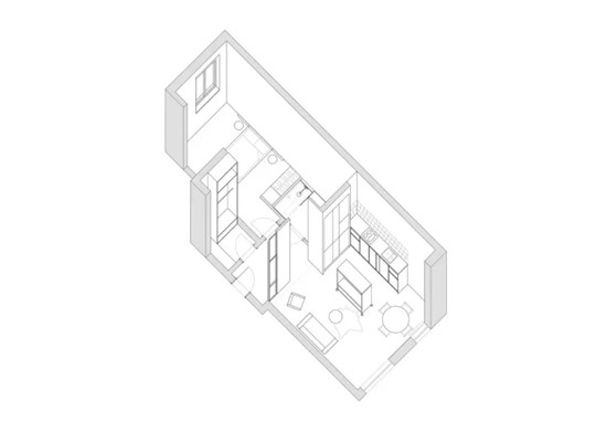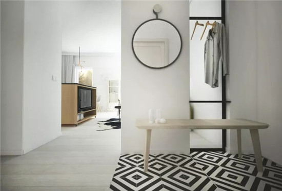 ▲原先的格局因为空间面积的原因,显得局促而封闭,设计师在重新改造时,把握好各个功能区开放与独立之间的平衡点,例如在入口处,立柱与衣架共同形成了划分功能区的隔断,阳光穿过客厅,洒向室内的每一角落。