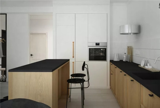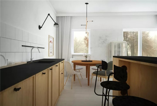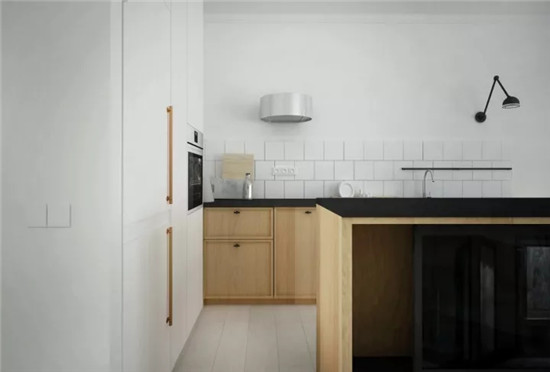 ▲白净的基底下,不论是天然的木元素,还是质感的黑色调,都因为鲜明的对比而带来了清爽利落的视觉感受。