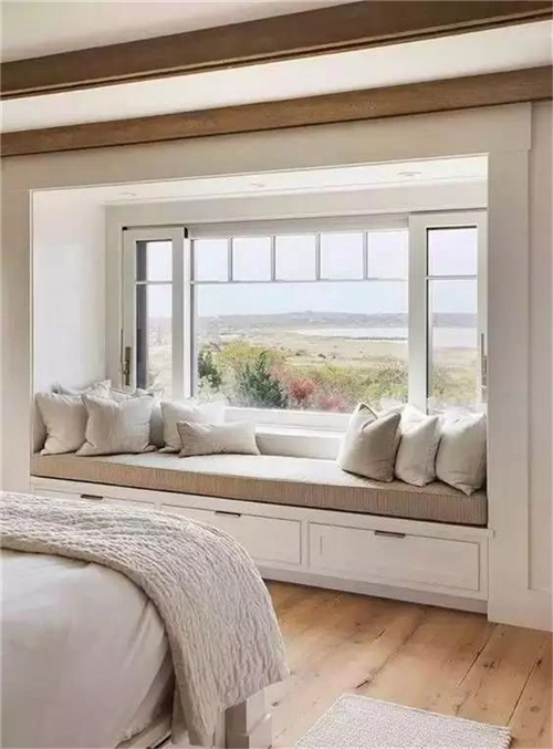 其实,在窗户旁搭配设计一张转角收纳箱
