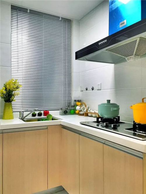 ▲▲▲厨房的墙砖是较大块纯白色的,比较容易清理,空间也更显明亮。