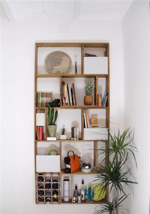 厨房、书桌,双人餐桌、小皮沙发和一个大衣架,总共有五个“角落”,形成一条动线,书房则隐藏在19世纪的木门后面。