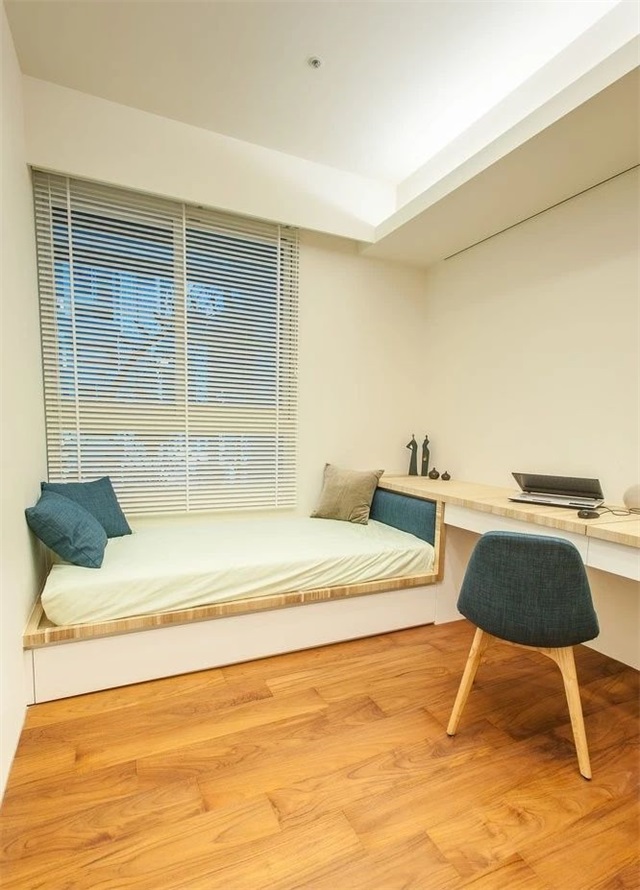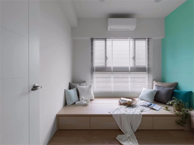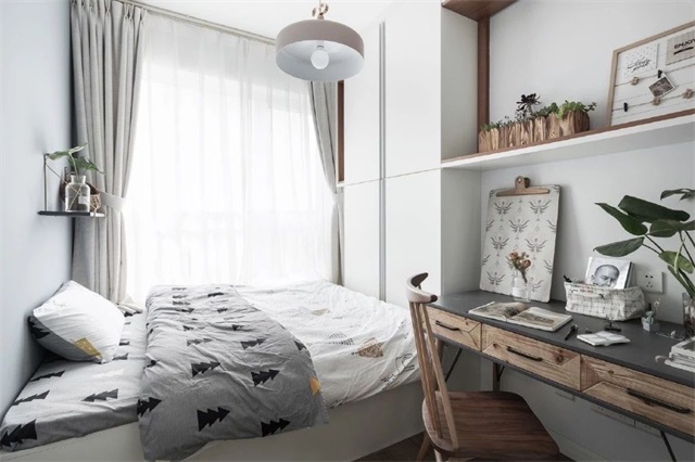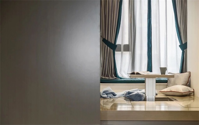 客卧和儿童房里,榻榻米的利用率极高,房间面积较小,放一张大床对空间实在是浪费,榻榻米不仅可以睡觉,还有强大的储物功能。在窗下设计一个榻榻米,简约又大气。