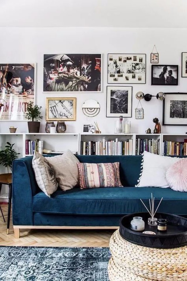 如果平时喜欢坐在沙发上看书,则可以将沙发不靠墙摆放,巧妙地利用沙发边柜作为背景。使得沙发看起来不再孤立无援,又大大增加了物品摆放的空间。边柜柜面上可以摆放台灯、相框、饰品,柜里则可以塞进大摞的书籍和生活用品。