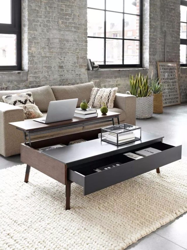客厅除了墙面空间设计,还可以好好“挖掘”一下茶几的“潜力”。茶几是用来摆放茶水之物,表面还能做些简单收纳与装饰。带有抽屉的茶几,还能把零食和杂乱无章摆放的小饰品放在里面。另外现在有些多功能茶几,还可以兼具电脑桌的功能。