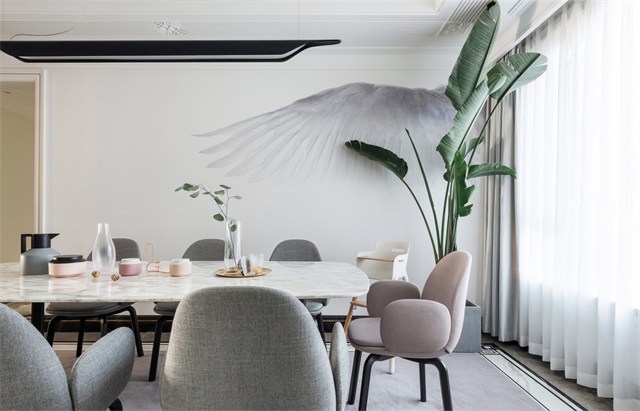 为了突出个性和美感,软装搭配需要特别用心,家具、灯具、室内的软装包括搭配的艺术品绝不是单一的一块砖或者是一个板材,综合的设计才能体现整个空间的调性。