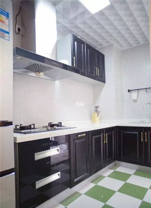 黑色的柜门与白色砖的简单搭配最是经典,绿色的加入透着几分小复古。