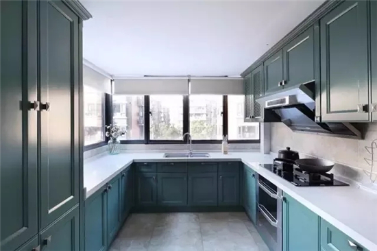 U型厨房的设置符合人体工程学,在做饭的时候炒菜、切菜及常见工具都可以放在左右两侧,非常方便。