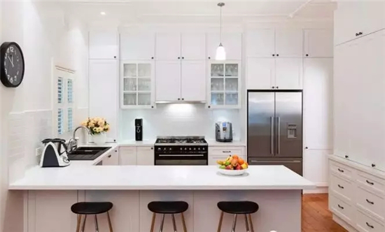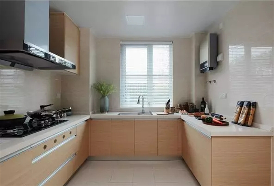 U形橱柜除了美观实用之外,另一个优势,能充分的利用活动空间,最适合狭窄的空间。因为U型橱柜的人性化设计,在厨房做饭时可以灵活的走动也不怕会碰到。