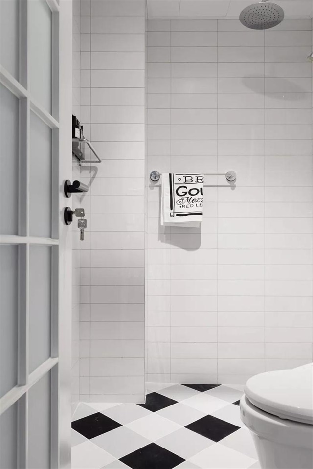 ▼卫生间地上的砖完美诠释房子的基调:黑白灰,卫生间做了干湿分离,浴室柜是开放式的方便取拿物品。(本文来源:鱼姑父)